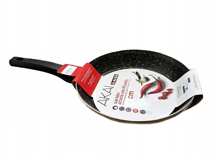 A frigideira AKAI de 24 cm é ideal para famílias ou para aqueles que gostam de cozinhar em maior quantidade. Feita de aço esmaltado, garante resistência e uma longa vida útil. A sua superfície esmaltada facilita a limpeza e evita a corrosão. Adequada para todos os tipos de fogões, incluindo indução.