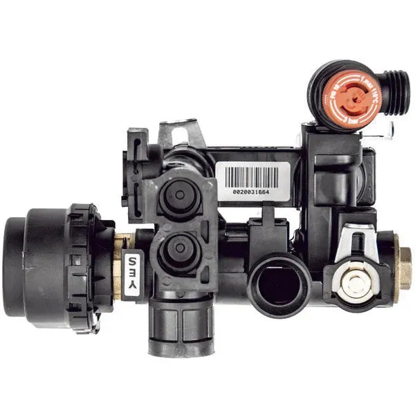 O bloco hidráulico é um componente essencial da caldeira que regula o fluxo de água entre os circuitos de aquecimento e água quente sanitária. Este bloco hidráulico de 3 vias permite a correta derivação e distribuição da água quente, garantindo o funcionamento eficiente e seguro da caldeira Saunier Duval.
