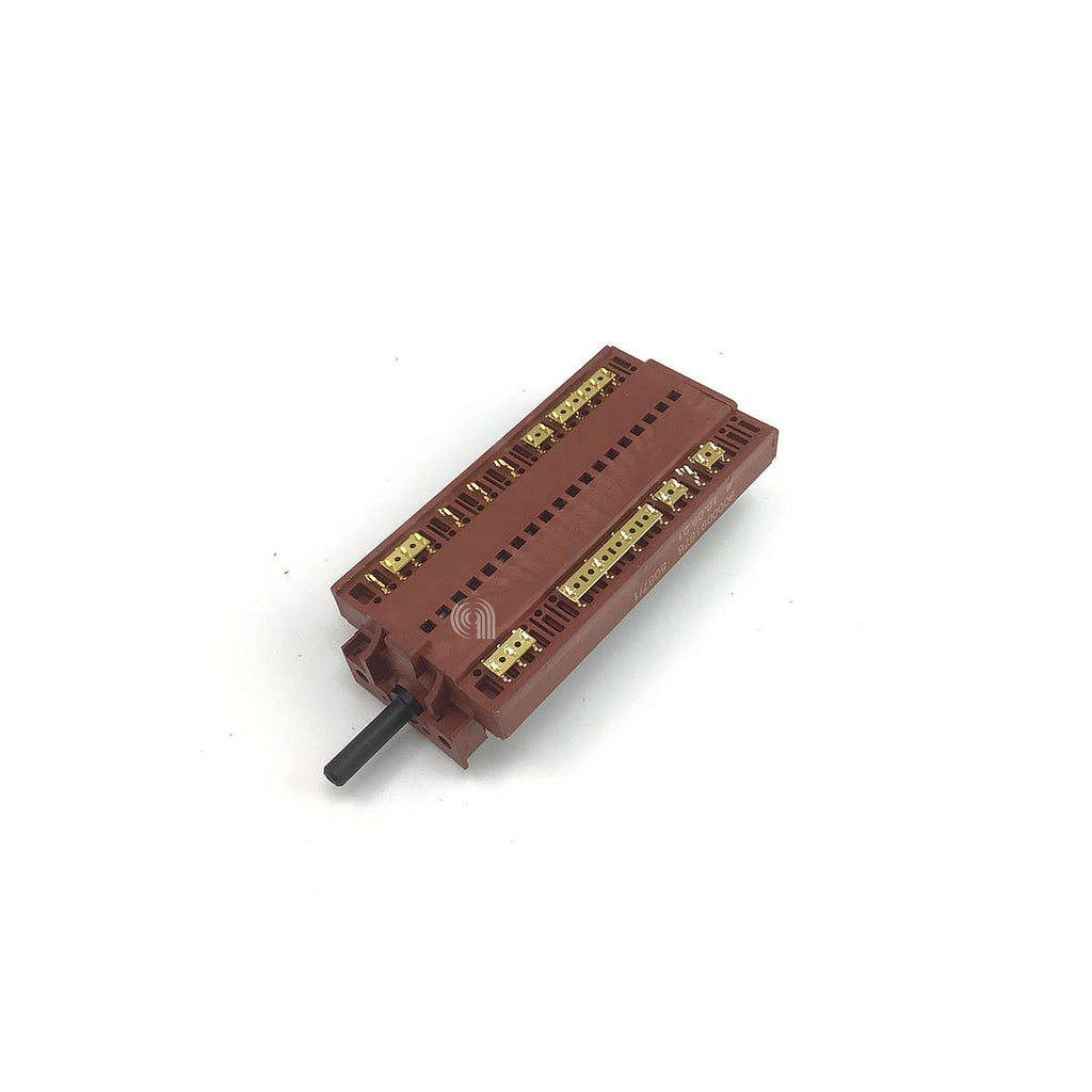 O commutador é um interruptor rotativo concebido para controlar as funções e seleções em fornos domésticos. Esta peça de substituição é compatível com eletrodomésticos de cozedura, especialmente fornos, e permite selecionar diferentes modos de cozedura ou temperaturas.