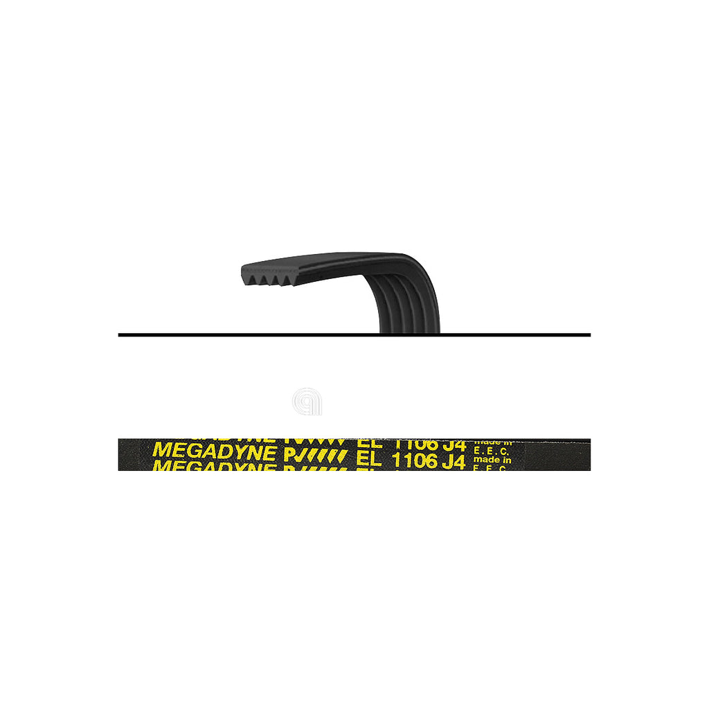 Correia Poly-V J4 1106 EL original para máquinas de lavar, concebida para transmitir o movimento do motor ao tambor, assegurando um funcionamento ótimo do eletrodoméstico.