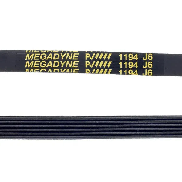 A correia estriada 1194 J-6 é uma peça fundamental que transmite o movimento do motor ao tambor da máquina de lavar, permitindo a rotação correta durante os ciclos de lavagem. Esta correia não elástica e do tipo J-6 está concebida para um ajuste preciso e duradouro, garantindo um funcionamento eficiente do eletrodoméstico.
