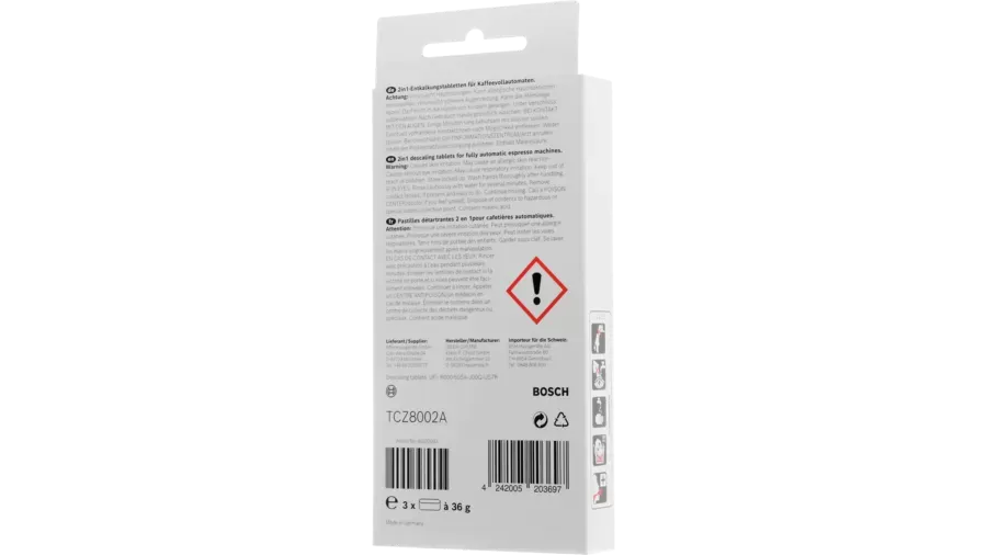 • Otimizado para o processo de descalcificação automática das máquinas de café Bosch.