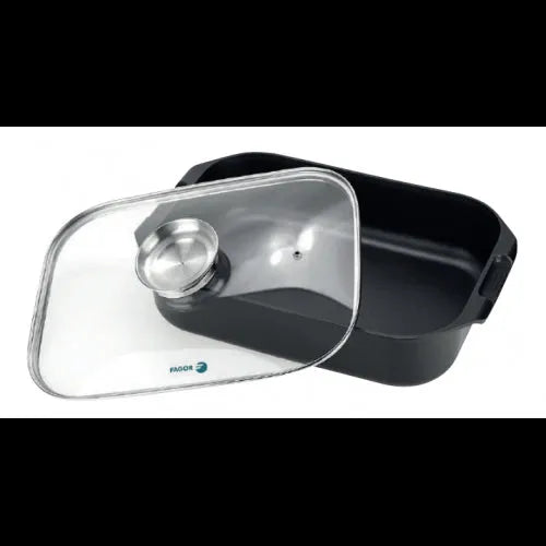 A gama de frigideiras Fagor Future é fabricada em alumínio forjado com um revestimento antiaderente ecológico sem PFOA, garantindo uma cozedura saudável e fácil limpeza. O seu fundo encapsulado por impacto, conhecido como IMPAKSTEEL, permite uma distribuição uniforme do calor, sendo adequada para todos os tipos de fogões, incluindo indução.