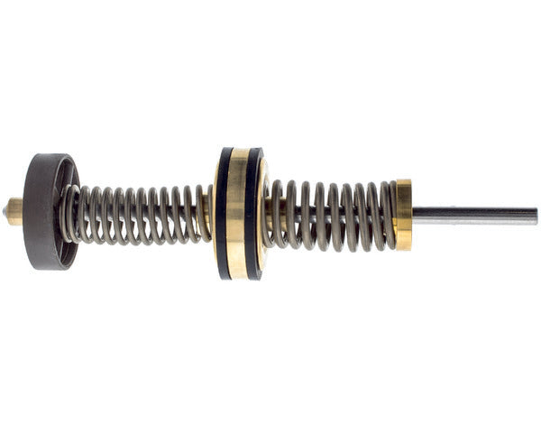 A guia mola da válvula é um componente essencial do sistema hidráulico das caldeiras Vaillant. Esta peça atua como suporte e mecanismo de retorno para a válvula comutadora que regula o fluxo de água quente e de aquecimento, assegurando o correto funcionamento do sistema. O conjunto inclui a guia e a mola que permitem o movimento preciso e a comutação fiável da válvula.