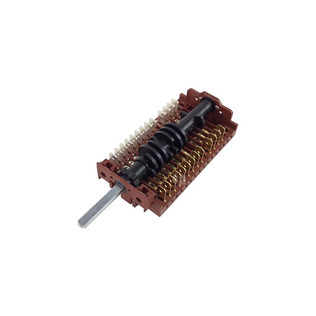 Este interruptor 8F no turbo é uma peça de substituição original para fornos da marca Smeg. Está concebido para controlar funções específicas do forno, garantindo um funcionamento correto e seguro do eletrodoméstico.