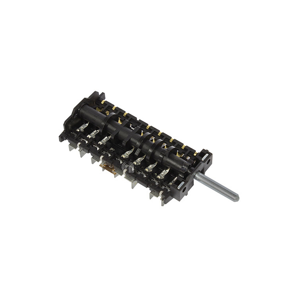 Interruptor original para fogões Smeg, concebido para controlar funções específicas do eletrodoméstico. Esta peça de substituição é fundamental para manter o correto funcionamento do painel de controlo ou dos componentes mecânicos em fogões da marca Smeg.