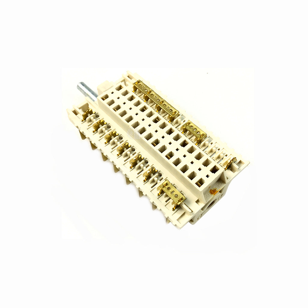 Interruptor original para forno compatível com várias marcas reconhecidas como Whirlpool, Indesit, Ariston e Hotpoint. Este componente é fundamental para controlar funções elétricas do forno, garantindo o seu correto funcionamento e segurança.