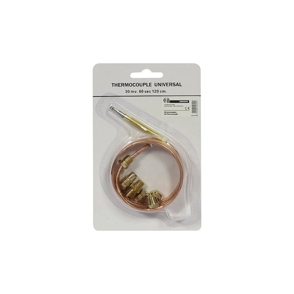 Kit termopar ELECTROLUX (OEM/Adaptável) de 1200mm de comprimento, ideal para placas de cozinha. Este kit universal inclui os acessórios necessários para uma fácil instalação. Assegura o correto funcionamento do seu eletrodoméstico, garantindo segurança e eficiência. Compatível com uma ampla gama de modelos de placas de cozinha. Referência: 50269741000.