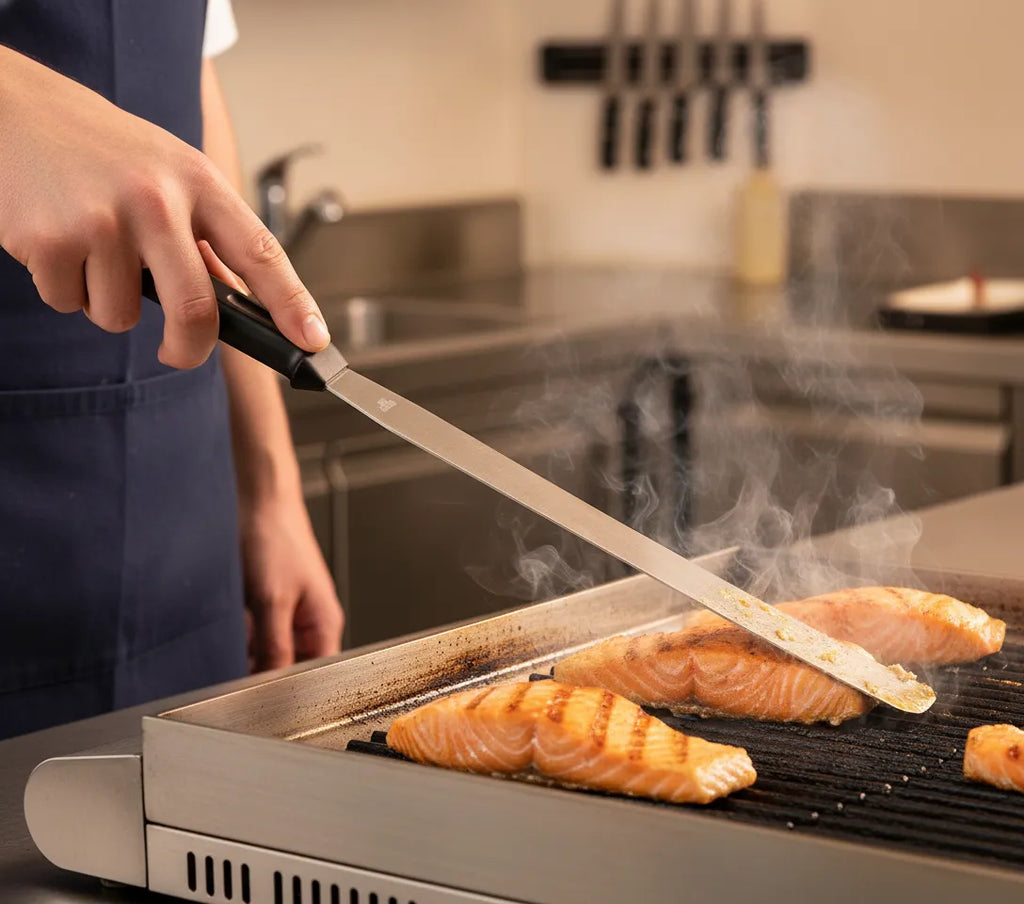 É uma espátula de qualidade profissional fabricada pela LACOR, marca especializada em equipamento para hotelaria. Está concebida para suportar o uso intensivo em restaurantes, hotéis e catering, mas o seu preço competitivo torna-a perfeitamente acessível para cozinhas domésticas que procuram ferramentas de nível profissional. Obtém qualidade profissional a preço razoável.