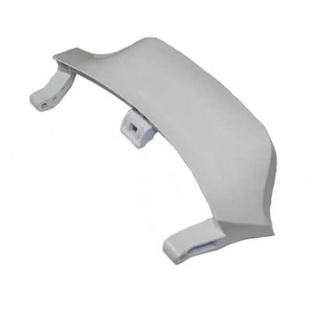 Pega para fecho da porta da máquina de lavar. Usado em vários modelos e marcas. Peça de substituição em plástico branco.