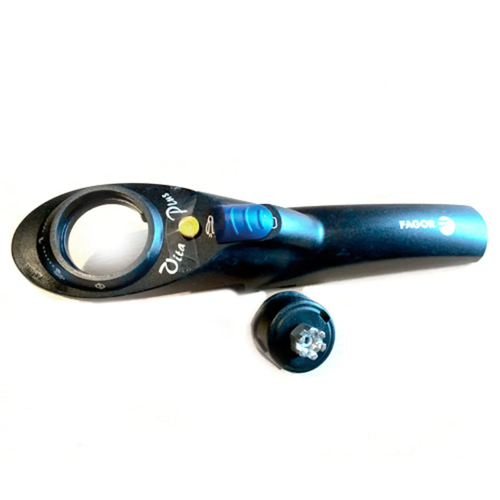 Alça para tampa de panela Fagor Vital Plus. A chaminé, incluída no cabo, possui uma porca grossa. Inclui também o corpo da válvula (vendido sem válvula)