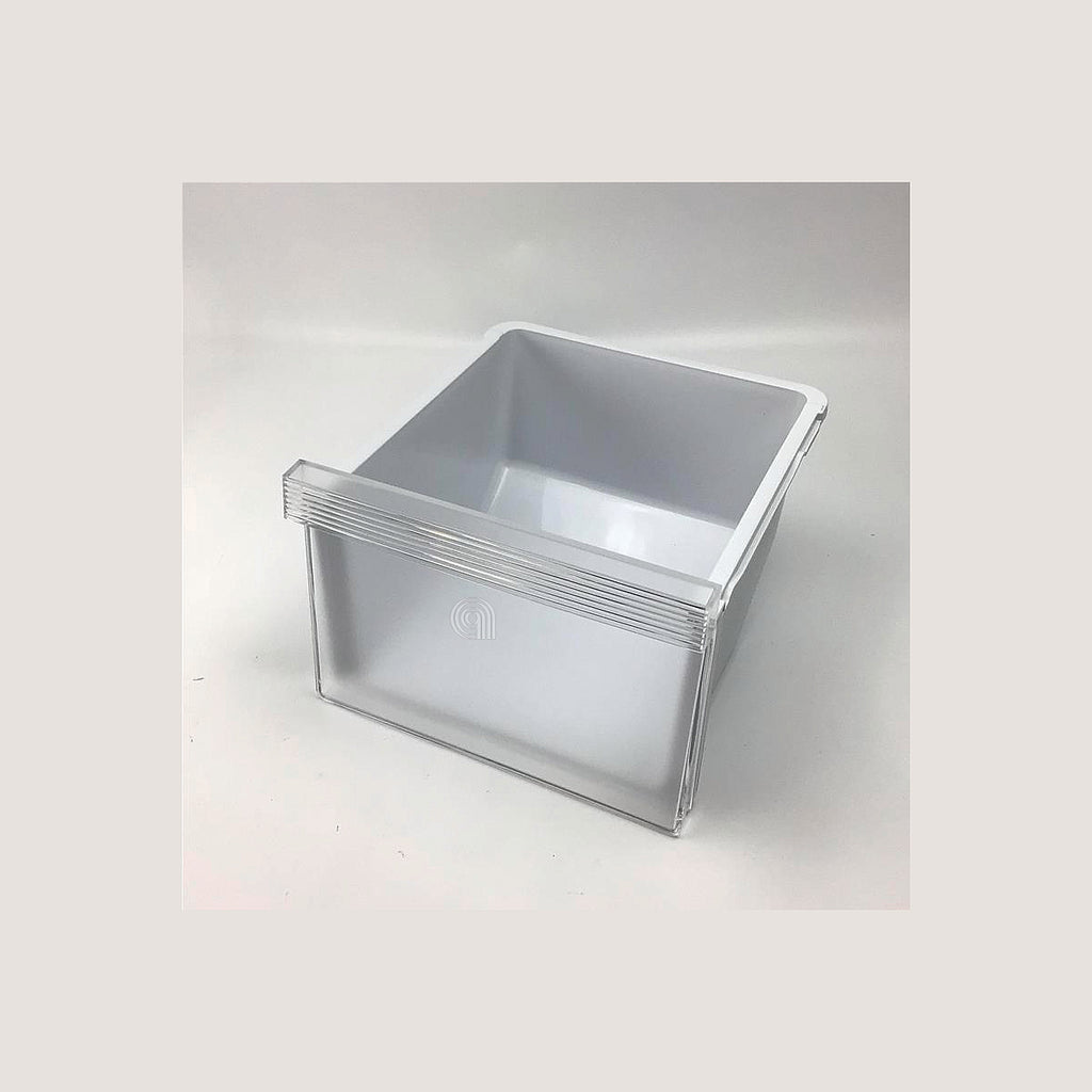 Este conjunto de gaveta superior é uma peça original de substituição para frigoríficos da marca Midea. Utiliza-se para substituir a gaveta superior interna que permite armazenar alimentos frescos e organizados dentro do frigorífico.