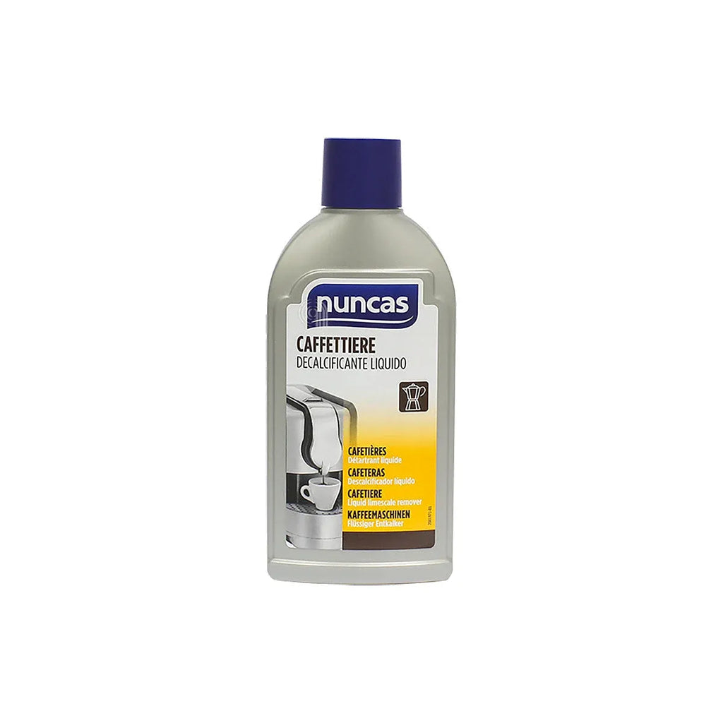 Descalcificante líquido Nuncas concebido para a limpeza e manutenção de máquinas de café espresso e cafeteiras domésticas. Apresentado num frasco de 250 ml, este produto ajuda a eliminar os depósitos de calcário que se formam com o uso da água, preservando o funcionamento ótimo dos eletrodomésticos.