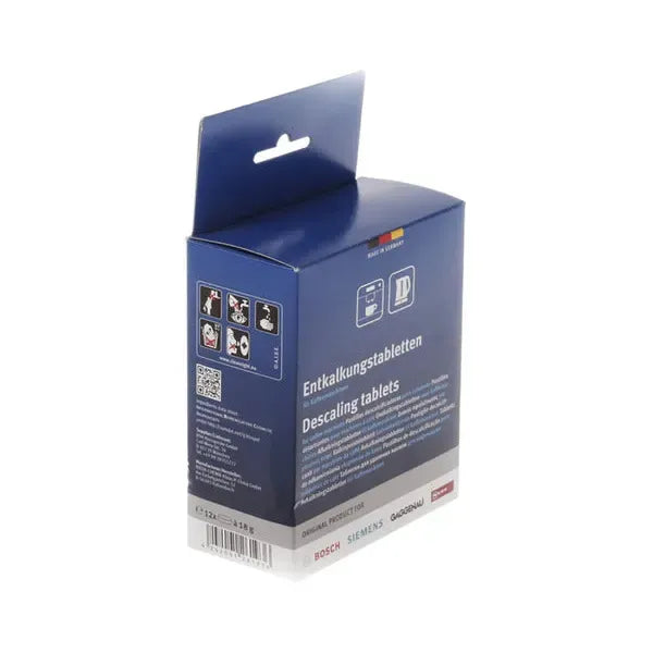 Pastilhas descalcificadoras concebidas para eliminar eficazmente os depósitos de calcário em máquinas de café e chaleiras, especialmente nos modelos Bosch. Estas pastilhas facilitam a limpeza interna do aparelho, garantindo um funcionamento ótimo e prolongando a vida útil do eletrodoméstico ao prevenir a acumulação de calcário que pode afetar a qualidade do café e o desempenho do equipamento.