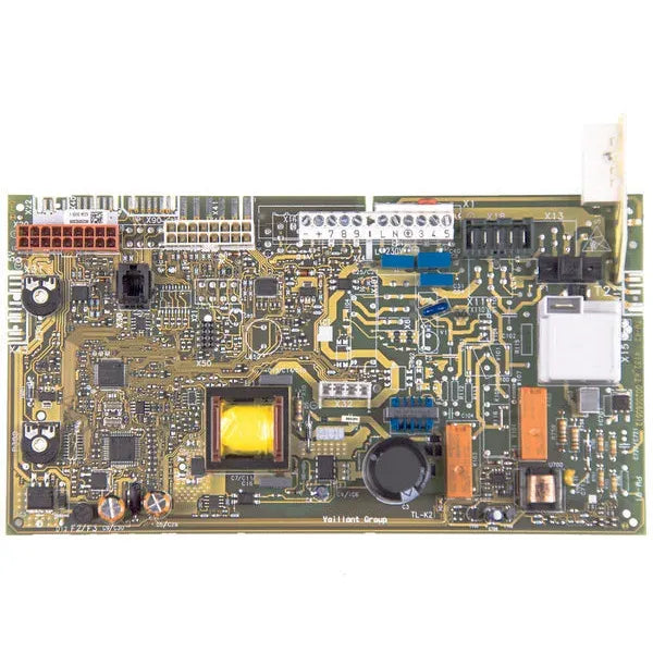 Esta placa eletrónica é o módulo principal de controlo para caldeiras Vaillant. Gere o funcionamento dos componentes elétricos e garante a regulação adequada do aquecimento e da água quente sanitária. A placa processa os sinais dos sensores e ativa os diferentes elementos para um desempenho ótimo e seguro da caldeira.