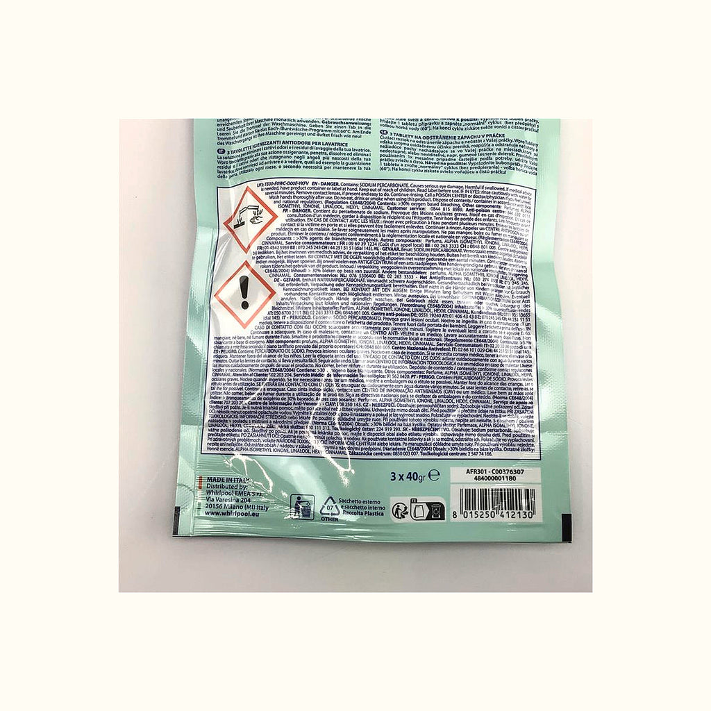 Pastilhas Powerfresh antiódor para máquina de lavar Whirlpool e Indesit 3 unid.
