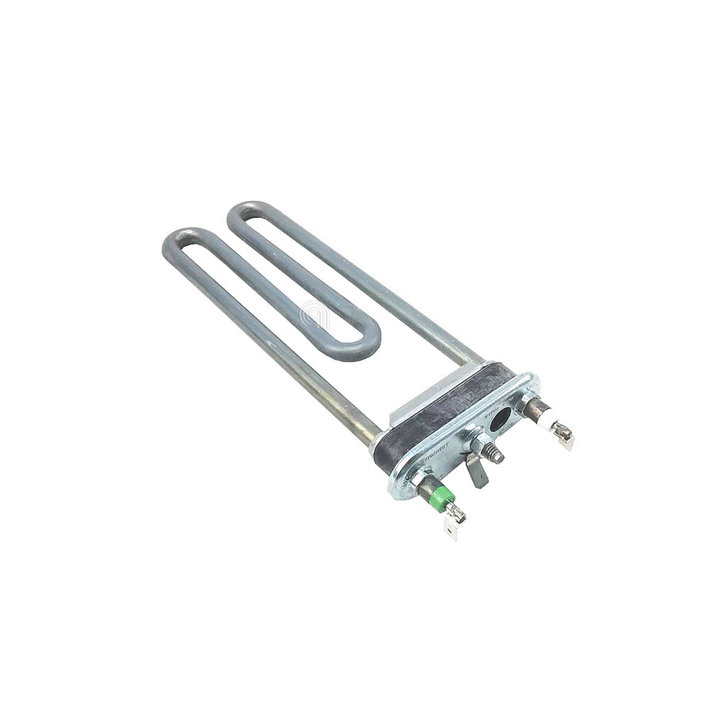 Resistência de aquecimento original de 1700W para máquinas de lavar das marcas Whirlpool, Indesit e Ariston. Inclui fusível térmico e orifício para sensor NTC, garantindo um aquecimento seguro e eficiente da água no ciclo de lavagem.