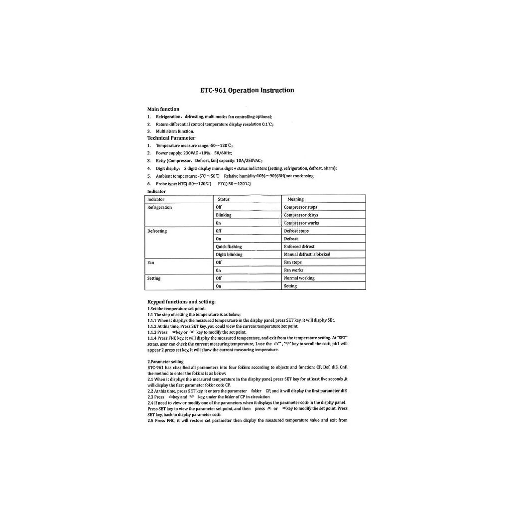 O Termóstato Digital ETC-961 UNIVERSALE é um controlador de temperatura altamente eficiente e fiável, concebido para oferecer um controlo preciso em sistemas de refrigeração e congelação. Este dispositivo adaptável é ideal para uma vasta gama de aplicações, incluindo congeladores, incubadoras, sistemas HVAC e aquários, garantindo uma gestão óptima da temperatura. A sua interface de utilizador intuitiva e o seu design compacto facilitam a instalação e o uso em ambientes comerciais e industriais, proporcionando um desempenho estável e fiável com uma precisão de ±1°C numa gama de -50°C a +120°C.