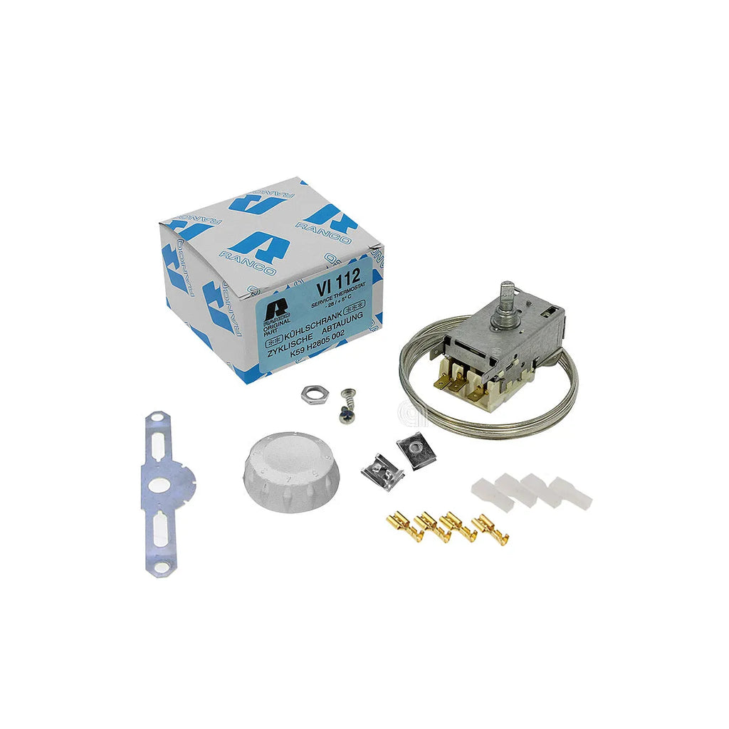 Este termostato frigorífico universal da marca RANCO, também conhecido como UNIVERSALE, é uma peça de substituição adaptável de alta qualidade concebida para frigoríficos com descongelação automática. É compatível com uma vasta gama de modelos de eletrodomésticos, incluindo os das marcas LIEBHERR e VARIFIX. O seu design versátil torna-o numa solução ideal para substituir termostatos danificados ou defeituosos, garantindo um controlo preciso da temperatura no seu frigorífico. A referência principal deste termostato é K54-P1102, e também é identificado pelo SKU AST-00227544.