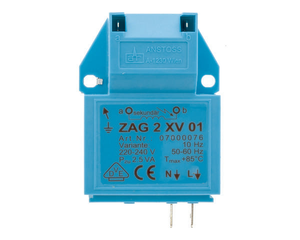 Este transformador é um componente elétrico concebido para caldeiras Saunier Duval que operam a uma frequência de 10 Hz. A sua função principal é adaptar a tensão elétrica para alimentar corretamente os circuitos internos da caldeira, garantindo um funcionamento seguro e estável.