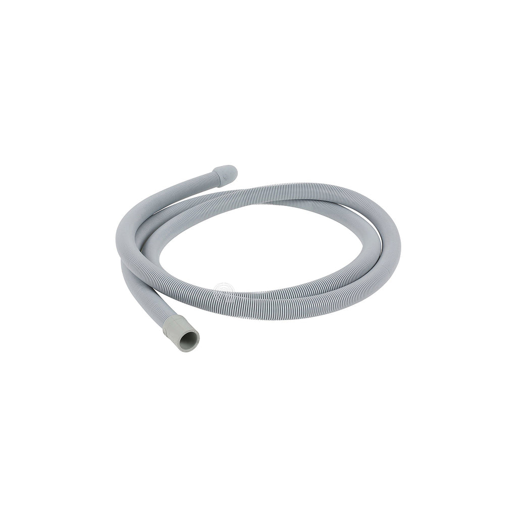 Este tubo de escoamento é uma peça de substituição original compatível com máquinas de lavar da marca Bosch e outras marcas associadas, concebido para garantir a correta evacuação da água no final do ciclo de lavagem.