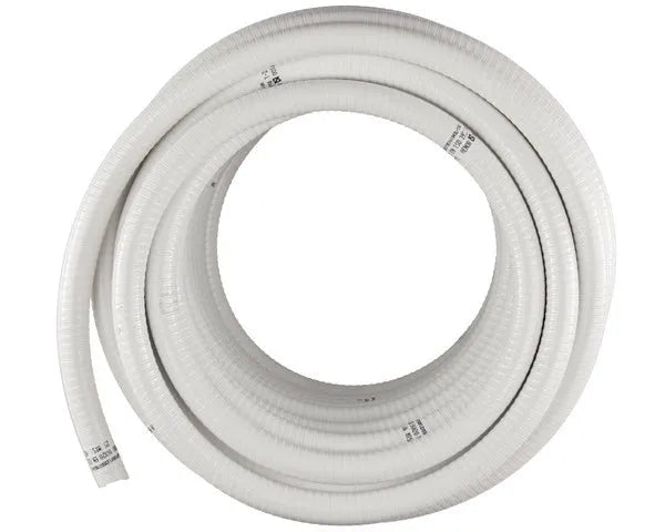 Tubo reforçado em espiral, flexível por metros. Indicado para instalações de esgotos hidráulicos, saneamento, canalização, drenagem de ar condicionado e instalações de piscinas. Permite uma colagem hermética e resistente. Este tubo de PVC flexível, com um diâmetro exterior de 20 mm e interior de 16 mm, é ideal para uma ampla gama de aplicações. O seu design reforçado em espiral garante durabilidade e uma instalação simples, oferecendo uma solução versátil para as suas necessidades de canalização e saneamento.