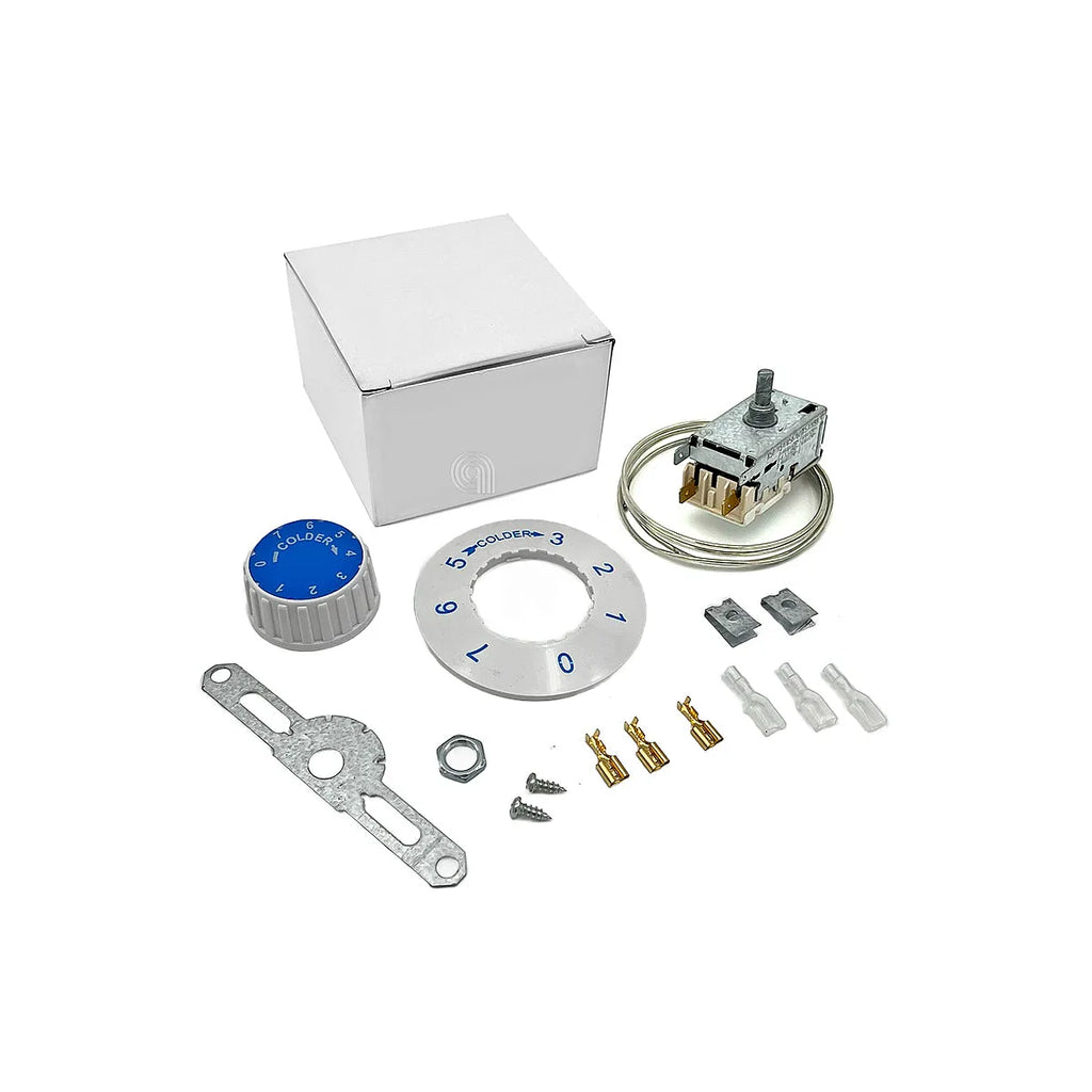 Termóstato universal VARIFIX, UNIVERSALE, MONDO tipo VB7, concebido para uma substituição rápida e simples em aplicações de refrigeração. Este componente adaptável é ideal para manter a temperatura ótima no seu frigorífico, assegurando um desempenho eficiente. Com um comprimento capilar de 1200mm, oferece flexibilidade na instalação. Os seus intervalos de temperatura de funcionamento são: Corte em frio: -3°C, Ligação em frio: 2°C, Ligação em quente: 12,5°C. É uma solução económica e fiável para a reparação do seu eletrodoméstico.