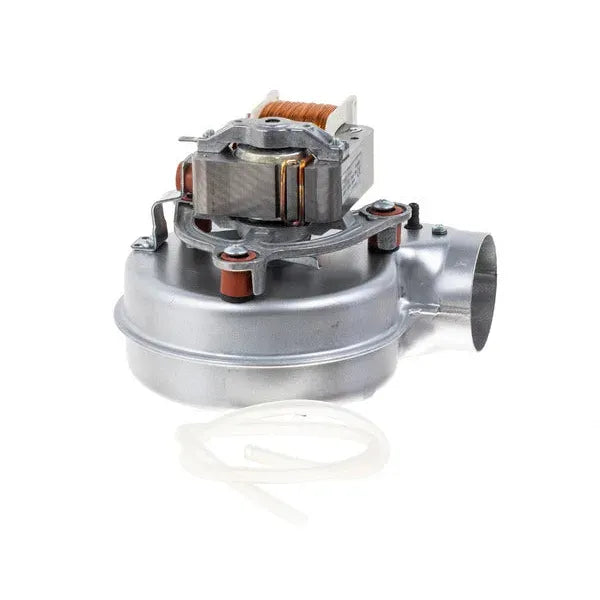 Ventoinha de extração para caldeira Ferroli, modelo Divatech32KW. Esta ventoinha é uma peça fundamental que permite a correta expulsão dos gases queimados no processo de combustão, assegurando a segurança e eficiência no funcionamento da caldeira.