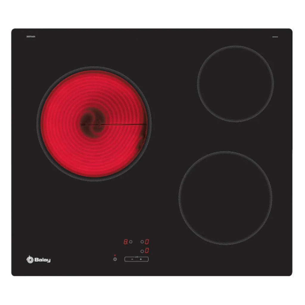 Vitrocerâmica Balay, Bancada, Vitrocerâmica, Embutida, 60 cm, 3, Acabamento preto/vidro, Controle de toque fácil de usar (9 níveis e sem temporizador), área de 24 cm